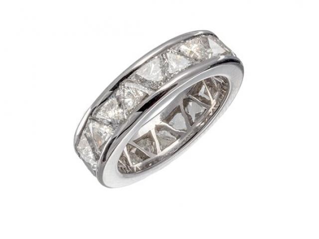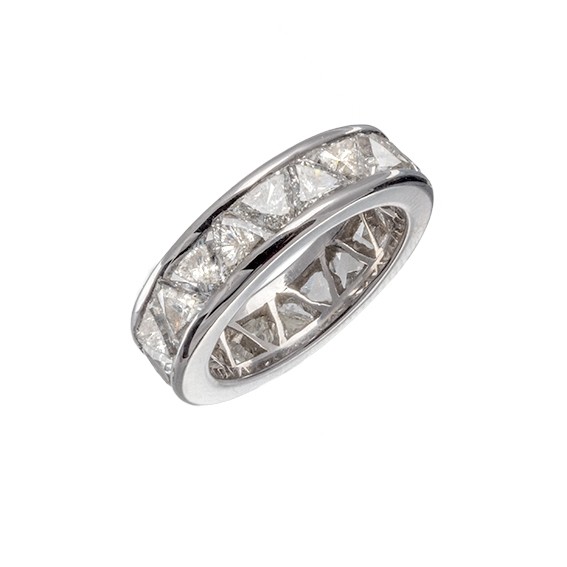 ALLIANCE TROIDA réalisée sur une monture rail en Or blanc 18 carats de 6.80 grammes et sertie de 4.69 carats de Diamants taillés en TROIDIA.