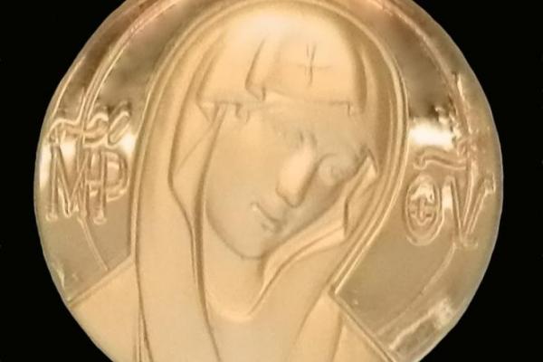 MEDAILLE VIERGE, de style Orthodoxe, gravée sur 2.26 grammes environ d'or jaune massif 18 carats, d'un diamètre de 18 millimètres.